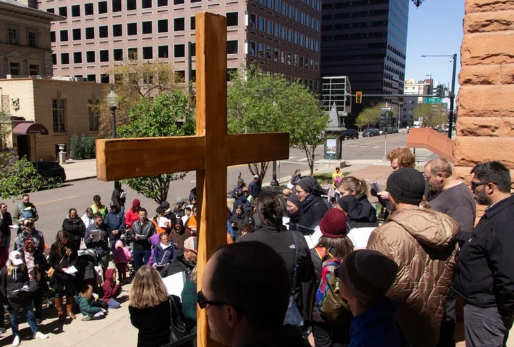 Even still, on this Good Friday in Denver, the sight of a crowd following a man carrying a large wooden cross was certainly out of the ordinary. Numbering more than 150, these families and single lay people, with priests and nuns in their midst, were also notable for their silence.